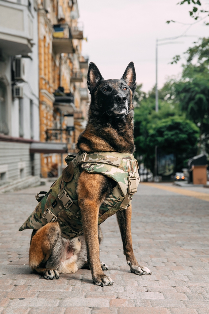 Animais treinados para atuar em conjunto com equipes de vigilância, reforçando a proteção de áreas sensíveis.